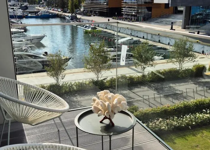 Luxury Yacht Park Apartment Marina View Gdynia Parking, som ligger ungefär 16 minuters gångavstånd från Świętojańska-gatan, erbjuder Wi-Fi. Inom 4 km från den 55 m² stora lägenheten hittar du Orlowo pir.